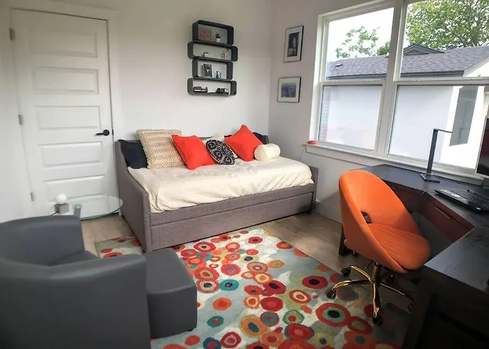 La casa de vacaciones se encuentra a unos minutos a pie del Capitolio de Texas, con fácil acceso al in.gredients, que está a tan solo 6 minutos a pie. Los huéspedes pueden visitar el Pabellón Frank Erwin Center, que está a 2 km de esta villa, o visitar la Universidad de Texas en Austin, que está a 2,1 km.